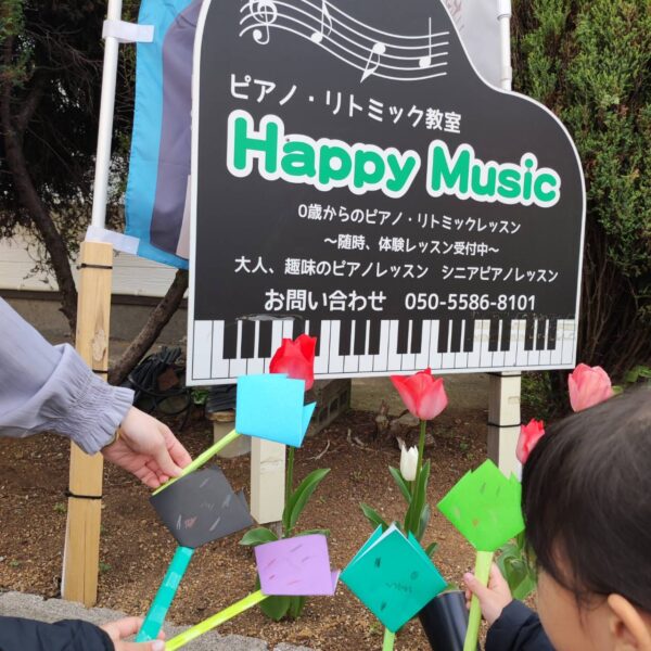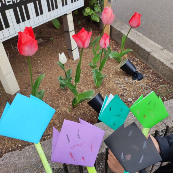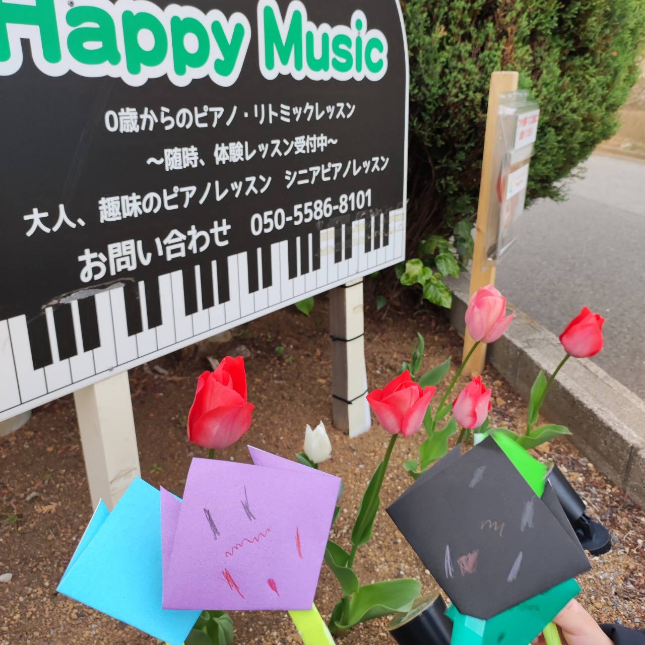 今日のピアノレッスン後には姉妹でレッスンにお通いの生徒さんが折り紙でチューリップを折ってくれました。